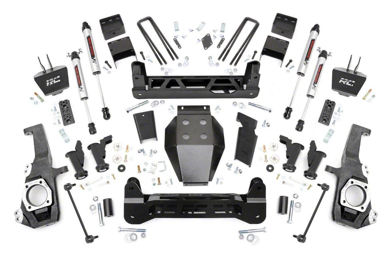 Enhanced Suspension Upgrade. The Rough Country Suspension 5-Inch Torsion Drop Suspension Lift Kit with V2 Monotube Shocks is designed to give your truck a bold stance while improving off-road capability. This kit elevates the entire vehicle, allowing for larger tires and more aggressive terrain handling without compromising the factory ride quality. This lift kit is a smart investment for those looking to enhance both performance and appearance.