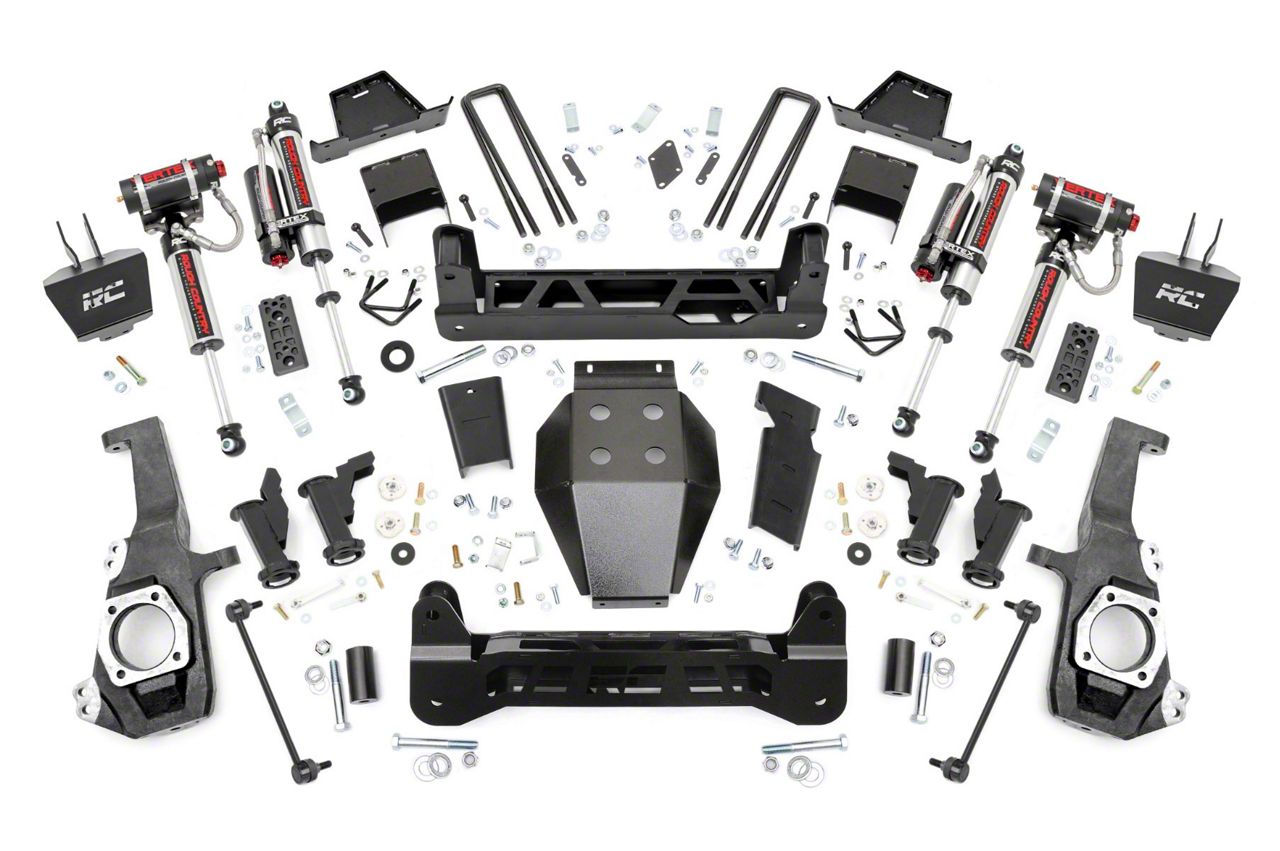 Vertex Adjustable Reservoir Shocks. Included in this Rough Country Suspension 7-Inch Torsion Drop Suspension Lift Kit with Vertex Reservoir Shocks are Rough Country’s premium Vertex Reservoir Shocks, which feature 8-stage adjustable damping and remote reservoirs for superior heat dissipation. These high-performance shocks deliver customizable ride quality, improved handling, and consistent performance during extended off-road use or heavy-duty towing.