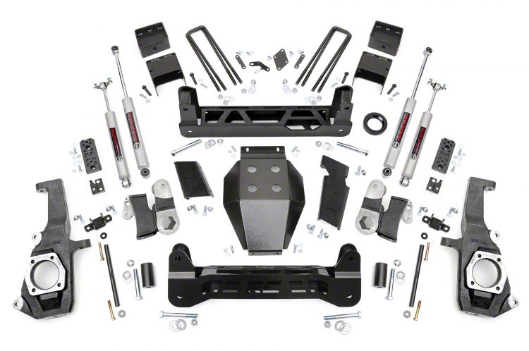 Enhanced Off-Road Capability. The Rough Country 7.50-inch NTD Suspension Lift Kit with M1 Monotube Shocks is designed for the 2011-2019 Sierra 2500 HD SRW, excluding Denali models. This lift kit provides significant ground clearance, allowing your truck to tackle challenging terrains with ease. The non-torsion drop design enhances overall suspension performance, ensuring your vehicle is ready for off-road adventures.