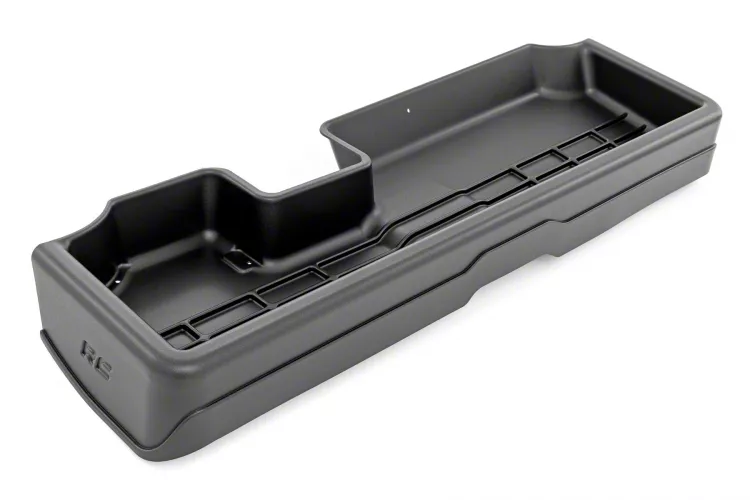 Custom Storage. If your truck is a workhorse, or you are just messy, it's OK. This Rough Country Custom-Fit Under Seat Storage Compartment will declutter your life. The custom, contoured look fits perfectly with the factory design and you'll be able to keep tools, gear, or whatever else efficiently stowed away under the rear seats.