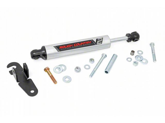 Straightforward Steering Repair. The Rough Country V2 Steering Stabilizer is engineered with precision and durability in mind. Its heavy-duty construction and premium materials ensure long-lasting performance even in the harshest conditions. Get ready to tackle rugged landscapes and bumpy roads without worrying about the wear and tear on your steering components.