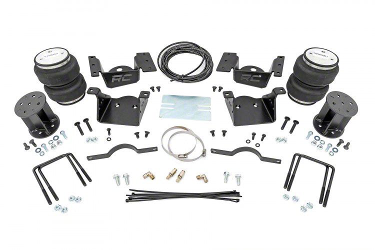 Ideal Leveling. Equipping your truck with this Rough Country Rear Air Spring Kit for 0 to 7.50-Inch Lift; 10-1/4 to 11-1/4-Inch Range will help it achieve its ideal leveling. This air spring kit provides up to 5,000 pounds of load support and helps reduce the weight of the tongue of your trailer, preventing your vehicle’s rear from sagging. Furthermore, this kit helps you experience less sway, especially when you’re braking and steering.