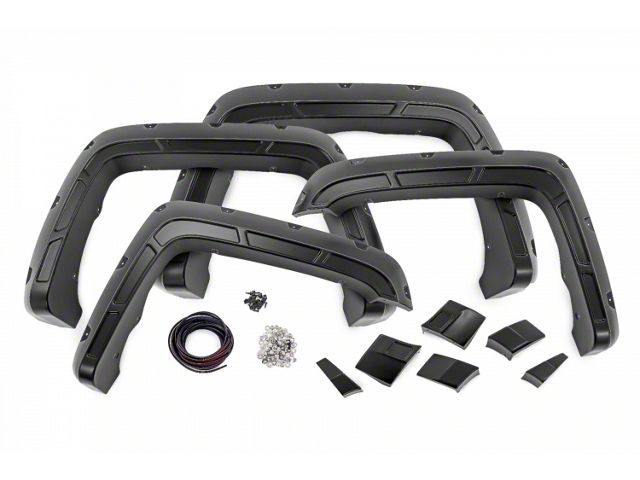 Durable Construction. With everyday truck drivers in mind, Rough Country designed a Fender Flare that recognizes your expectations for tough tactical design, and your right to demand products with high reliability and outstanding quality. Don't settle for anything less! Rough Country's Defender Flares are designed to handle on or off-road terrain. Rough Country's fender flares are constructed of a smooth ABS UV-protected Koradâ„¢ plastic. This material is lightweight and can endure the elements. The UV treatment process eliminates chalking and helps prevent sun fading.