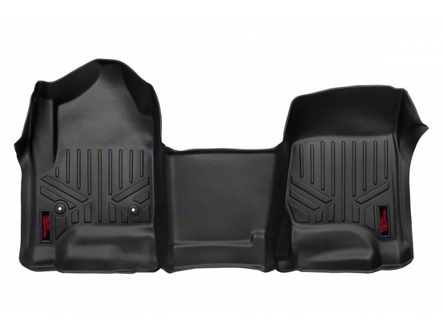 Keeps Cabin Clean. Ensure that your cabin is free from mud, dirt, water, and beverage spills with the Rough Country Heavy Duty Front Floor Mats – Black. These mats, which go on the front floors of your Sierra, have a network of reservoirs to pull away messes and trap them, as well as raised lips to keep them from getting onto the floors and elsewhere in the cabin.