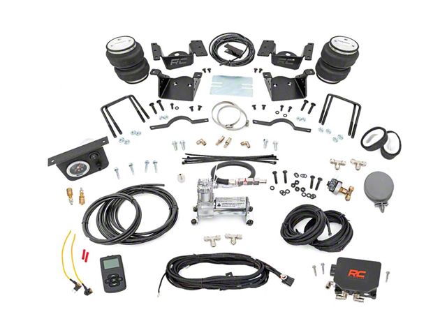 Description. Rough Country's Rear Air Spring Kit features two RC branded high-quality double convoluted airbags complemented with DOT-approved airlines. Whether you plan on towing or hauling in the not-so-distant future Rough Country's Air Spring kit is the must-have accessory to ensure that your trailer is level reducing the weight off of the tongue of your trailer. Each kit offers 1/4" push connector fittings and all of the bracketry needed to ensure installation is lightning fast and secure!