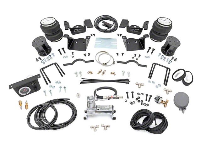 Description. Ideal Leveling. Is your truck your workhorse? The main attraction to the pick-up line is the accessibility to haul and tow as desired. However, due to the amount of weight in the bed, or the condition of the vehicle's rear leaf springs, this can cause the vehicle to be un-level when under load. Here at Rough Country, we created an innovative new product to ensure that these are troubles of the past. Introducing, Rough Country's Rear Air Spring Kit.