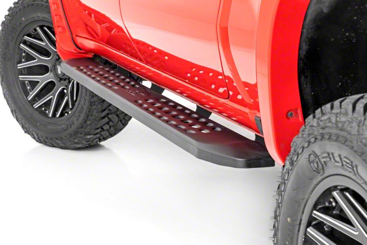 Heavy-Duty Side Step Solution. The Rough Country RPT2 Running Boards provide a rugged and practical upgrade for your Sierra 3500 HD Crew Cab. These boards deliver both improved accessibility and off-road-ready styling, with wide, textured stepping surfaces that offer traction in any condition—ideal for lifted or stock-height trucks.
