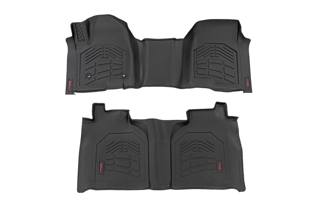 Comprehensive Coverage. Tailored specifically for your GMC Sierra 3500 HD Crew Cab, these mats provide a precise fit, ensuring comprehensive coverage and protection against all elements. Enhance your vehicle's interior protection with Rough Country's reliable, easy-to-maintain floor mats, combining functionality with durability for lasting cleanliness and style.