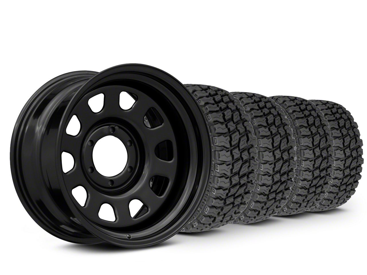 Gloss Black Rough Country Steel Wheel. Rough Country's D Window Style Wheel features the iconic 10 hole "D" window design for rugged yet classic good looks. This Wheel is completed in a high quality, clear coated, gloss black finish for an aggressive appearance that can withstand the hazards of everyday driving - including road chips and pitting. This Rough Country Wheel is perfectly suited for both street and off-road applications. Center cap not included - sold separately.