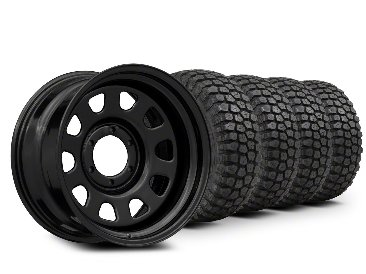 Mounted and Balanced Wheel and Tire Kit. This wheel and tire combo kit features (4) 17x9 Rough Country Steel Gloss Black 6-Lug Wheels and (4) Ironman Mud-Terrain All Country 33" - 285/70R17 tires that have been put together into an easy to buy kit that arrives to your door already mounted and balanced ready to be installed on your vehicle.