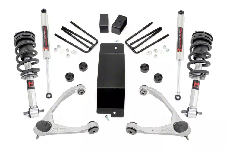 Full Kit. This Rough Country Forged Upper Control Arm Suspension Lift Kit is a full kit that includes struts, shocks, upper control arms, ball joints, drop spacers, skid plates, lift blocks, U-bolts, and required installation hardware.