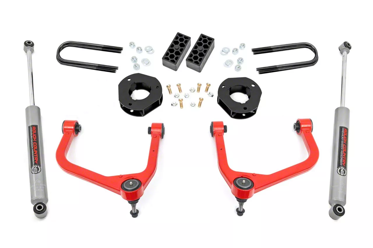 Application. This Rough Country Suspension 3.50-Inch Suspension Lift Kit with Front Strut Spacers and Premium N3 Rear Shocks fits 2025-2026 Silverado 1500 with OEM mon-leaf springs and without adaptive ride control, excluding diesel models.