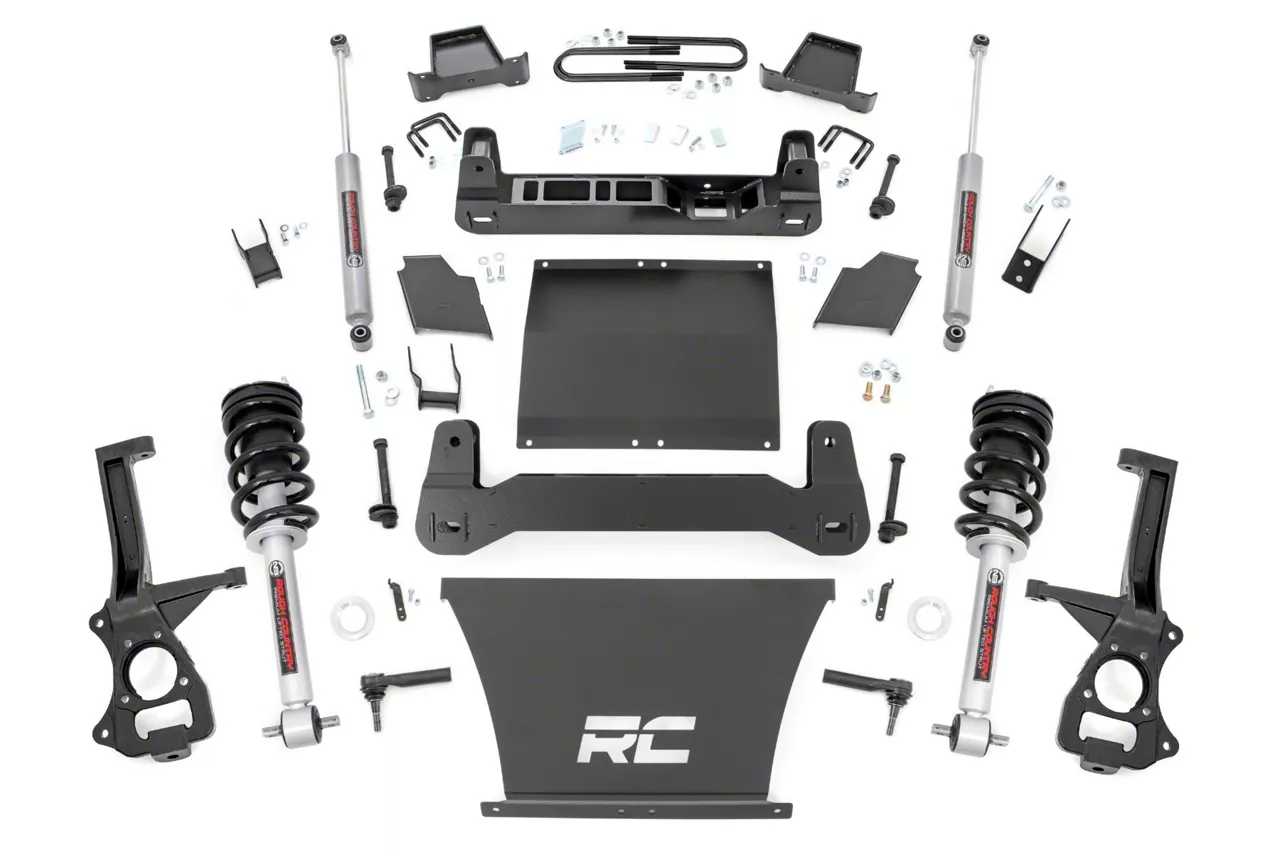 Off-Road Enhancement. The Rough Country 4-Inch Suspension Lift Kit with N3 Struts and N3 Rear Shocks is meticulously engineered for your V8 Chevrolet Silverado 1500 Trail Boss model. This kit elevates your Silverado's stance, increasing ground clearance and making space for larger tires and wheels, thus enhancing both the vehicle's off-road capability and its visual appeal.