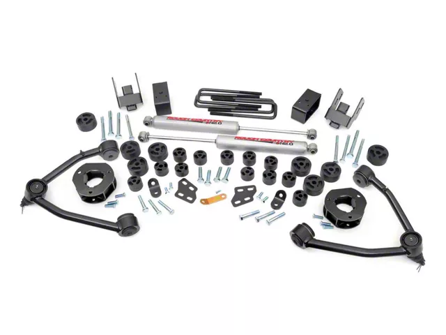 N2 Series Shocks. This Rough Country Combo Suspension Lift Kit comes with 2 N2 rear shock absorbers that will turn your Silverado into a sleek city machine and unstoppable off-road monster at the same time. The secret lies in these shocks' 10-stage, variable valving system that helps facility resistance valving, depending on the speed of the piston rod.