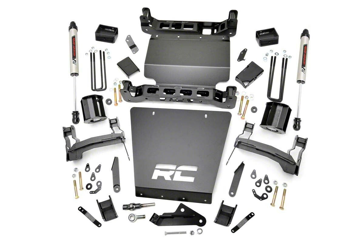 Improves Clearance and Off-Road Handling. Fortify your Silverado truck’s suspension system for the tough adventures ahead with this Rough Country 5-Inch Bracket Suspension Lift Kit with V2 Monotube Shocks. Apart from maintaining the axles’ factory position and angle in lifted applications, this lift kit equips your vehicle with the necessary components to help you tackle rugged terrain with remarkable ease. And with the increased lift that this kit provides, your truck will look even more formidable than ever.