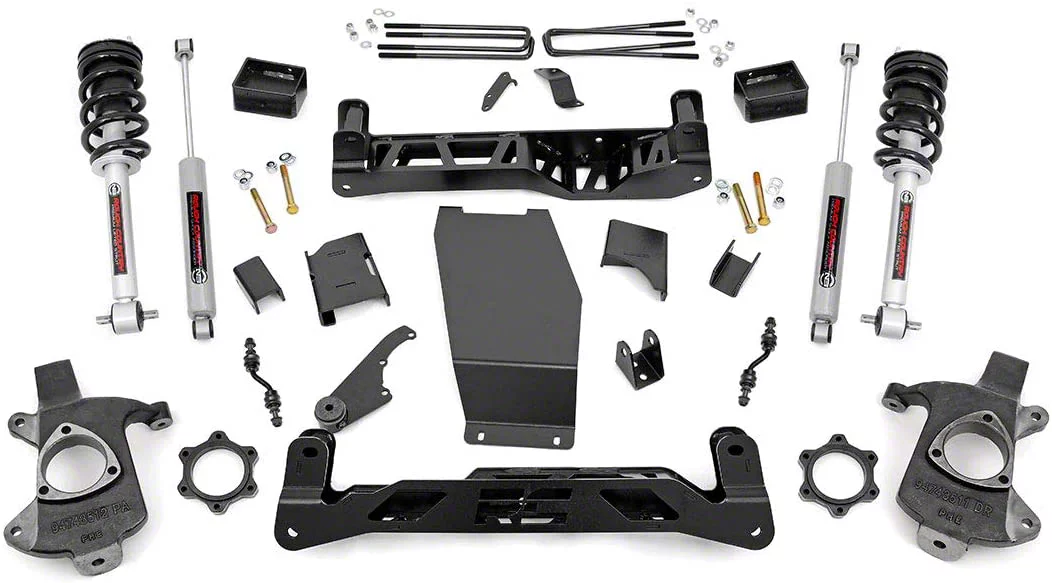 Maximum Off-Road Solution. Transform your daily driven Silverado into a total off-road warrior with the Rough Country 5-Inch Knuckle Suspension Lift Kit with Lifted Struts and Premium N3 Shocks. This suspension lift kit provides an overall lift of 5 inches while also giving your truck a leveled-off stance. These factors provide enough ground clearance to take on tougher off-road trails while running larger 33-inch tires. More significantly, this kit accomplishes this without greatly compromising ride quality so you could still use your truck as a daily driver.