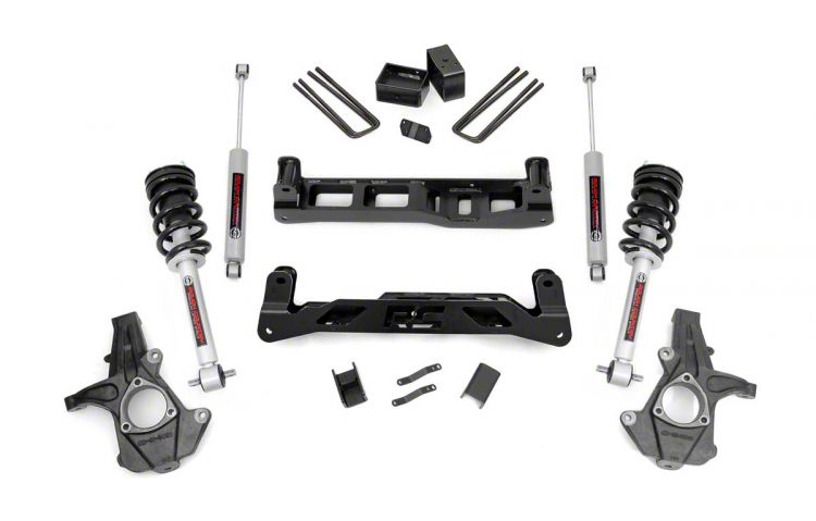 Optimum Performance and Comfort. Get optimum off-road and on-road performance when you equip our Silverado with the Rough Country 5-Inch Suspension Lift Kit with Lifted Struts and Premium N3 Shocks. This suspension lift kit gives your truck 5 inches of overall lift boosting its off-roading capabilities while also leveling out its stance. This increased ground clearance also gives you the ability to run 33-inch wide tires for an even more menacing style. Best of all, this lift kit achieves your lifted height while sustaining a factory ride quality.