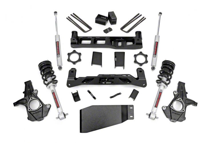 Higher Clearance. Do you want to improve your off-road experience and enhance ride quality? If so, the Rough Country 5-Inch Suspension Lift Kit with Lifted Struts and Premium N3 Shocks is an excellent choice. This kit enables you to lift your vehicle by 5 Inches and use up to 33-Inch tires on factory 20-Inch wheels. Besides its superb functionality, the kit has an aesthetic purpose. Thanks to the lifted knuckles and struts, your vehicle will look even more rugged.
