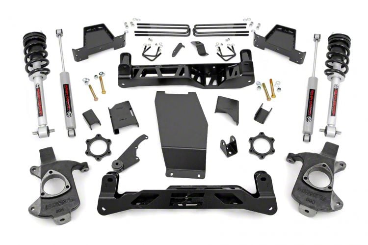 Offers an Impressive Lift and Aggressive Styling. Elevate your on- and off-road driving experience with Rough Country’s 6-Inch Suspension Lift Kit with Lifted Struts & Premium N3 Shocks. This impressive suspension lift kit raises your 4WD Silverado's front and rear ride height by 6 inches, giving it a more dominating and aggressive stance that’ll definitely grab people’s attention. Plus, the set includes Rough Country’s Premium N3 Shocks, which are designed for extreme off-road action and smooth highway rides.