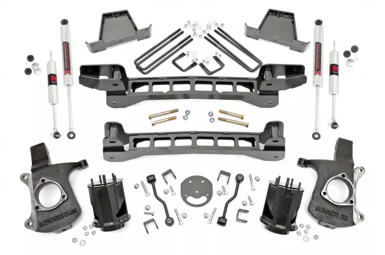 Superior Ride Experience. Elevate your vehicle to new heights with Rough Country 6-Inch Suspension Lift Kit with M1 Monotube Shocks. This comprehensive kit offers a complete truck transformation, allowing you to run impressive 37-inch tires while preserving the smooth, factory ride quality. Whether you're looking to conquer tough terrains or enhance your truck's appearance, this lift kit provides the ideal solution for a superior ride experience.