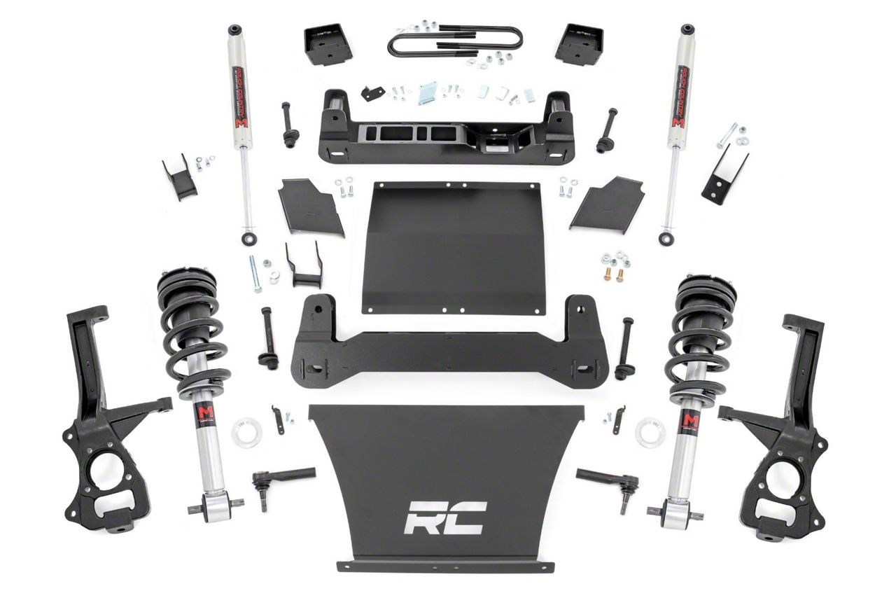 High-Performance M1 Struts and Shocks. This Rough Country Suspension 6-Inch Suspension Lift Kit comes equipped with Rough Country’s premium M1 monotube struts and shocks, designed to provide unmatched stability and damping control. With nitrogen-charged performance, they deliver a smooth ride on the road and reliable handling across rough terrain.
