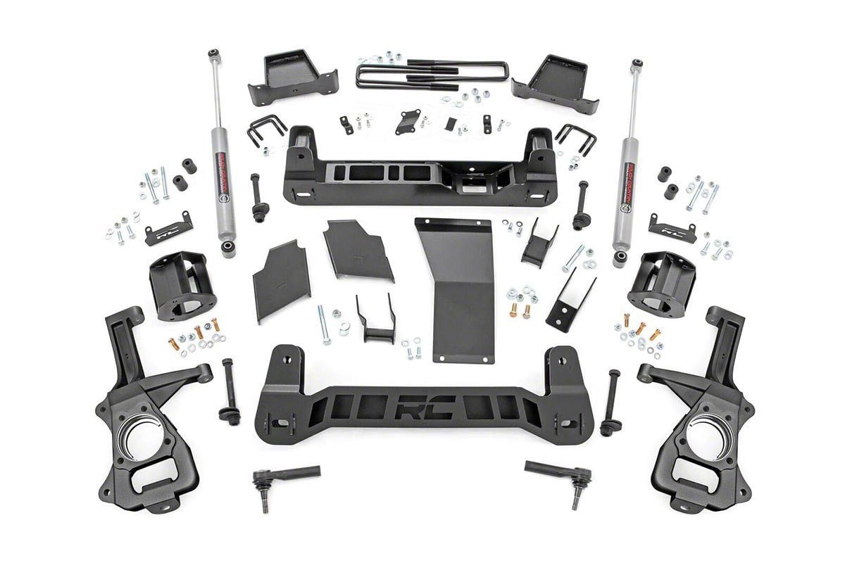 Improved Looks and Enhanced Performance. With this Rough Country 6-Inch Suspension Lift Kit that includes Premium N3 Shocks, your Silverado will look and perform better. It provides a 6-inch lift in the front and rear, giving you room for larger, more capable 35x12.50-inch tires. The extra height also improves off-roading capabilities and makes your truck look more aggressive. In addition, this suspension kit comes with rear shocks for a smooth ride no matter the terrain. The factory track width is also retained to help avoid steering and handling issues.