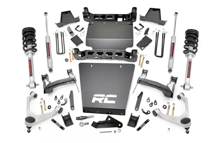 Enhanced Ground Clearance. Elevate your 4WD Silverado 1500 to new heights with the Rough Country 7-Inch Suspension Lift Kit with Lifted N3 Struts and Premium N3 Shocks. This comprehensive kit is engineered to provide impressive ground clearance and a bold, commanding presence on and off the road. With a 7-inch lift, this kit provides the ground clearance needed for larger, off-road tires, giving your Silverado the capability to conquer challenging terrains and obstacles with ease.