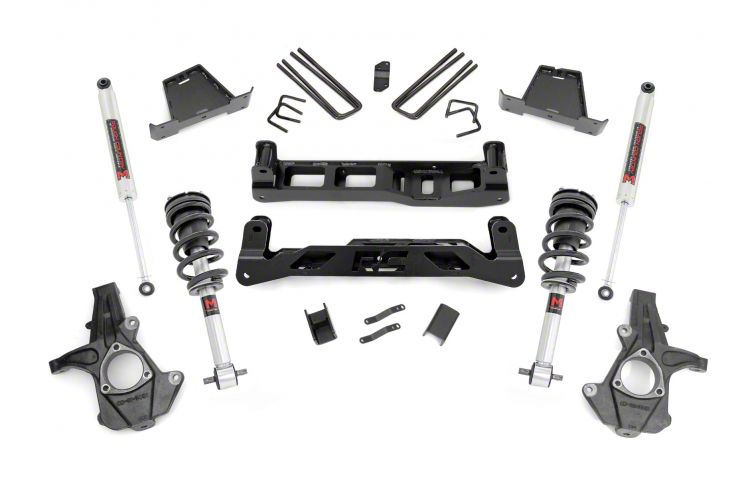 Description. Aggressive Styling. Get up and over all the obstacles in your path with Rough Country's 7.5 -Inch Lift Kit. Our Chevy/GMC 1500 lift kit provides enough clearance to run 35" tires on factory 20" wheels and offers a level stance for a rugged, aggressive look. Plus, with its high clearance cross-member design, you'll get unmatched ground clearance that's sure to turn heads. The 7.5 Lift Kit is designed to lift your ride without sacrificing shock and suspension travel while providing more off-road performance.