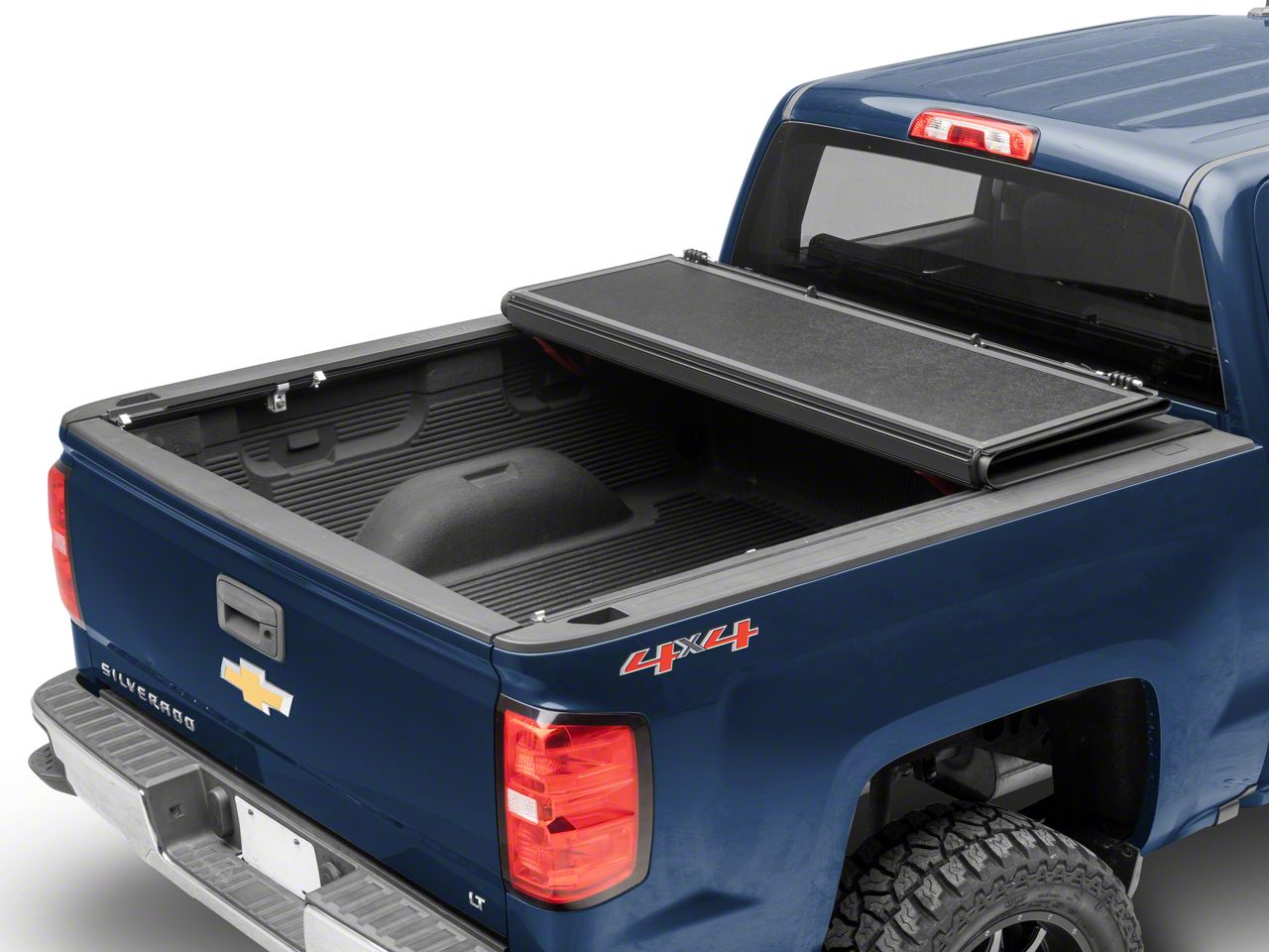 Application. This Rough Country Hard Low Profile Tri-Fold Tonneau Cover is designed to fit 2014-2018 Chevrolet Silverado 1500 models with a 5.80-foot short box and bed rail caps.