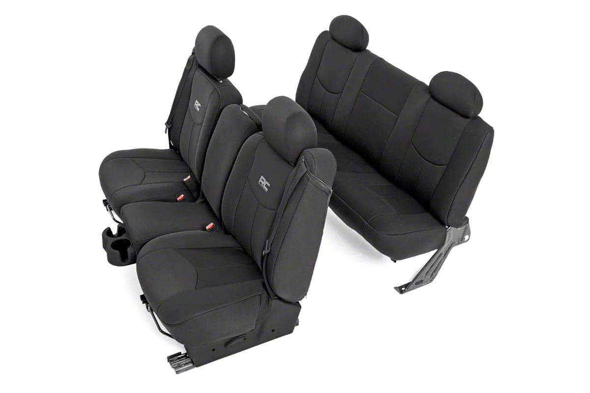 Application. Rough Country Black Neoprene Front And Rear Seat Covers fit all 1999-2006 Chevrolet Silverado 1500 Extended Cab models.