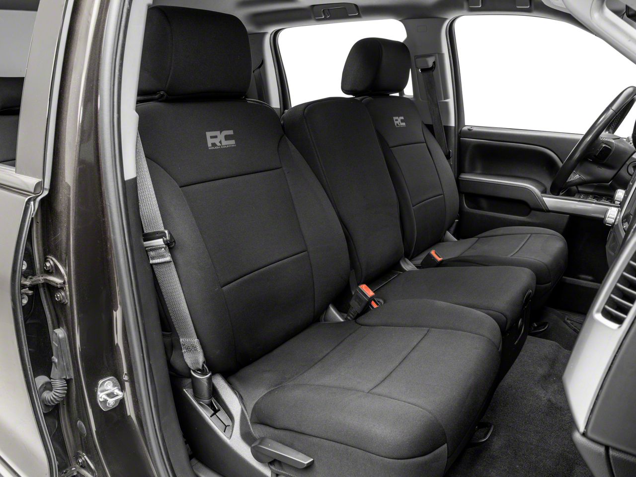 Application. Rough Country Black Neoprene Front and Rear Seat Covers fit all 2014-2018 Silverado 1500 Crew Cab models.