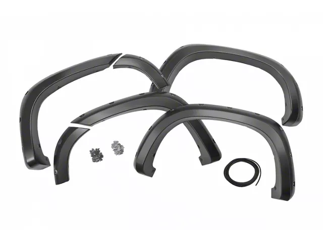 Bold Protection and Style. Elevate your truck's look with the Rough Country Fender Flares. Featuring a wide pocketed design and a simulated riveted look, these flares add a rugged, off-road-ready appearance while offering excellent protection against rocks, mud, and other road debris.