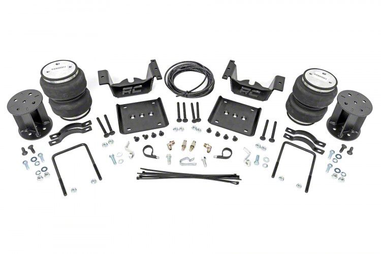 Offers Safer Hauling or Towing. Prevent your truck from squatting when hauling or towing by installing this Rough Country Rear Air Spring Kit for 0 to 7.50-Inch Lift; 10-1/4 to 11-1/4-Inch Range. This rear air spring kit contains high-quality double convoluted airbags with DOT-approved airlines and supportive hardware to level your truck even when heavily loaded.