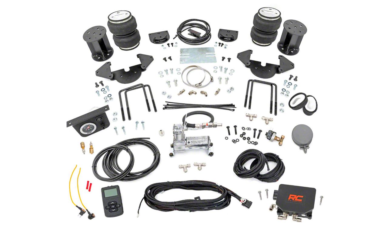 Control. An extra degree of convenience is provided via the wireless remote control of the Rough Country Rear Air Spring Kit. It allows you to control the air springs from the vehicle's exterior or interior. You may precisely adjust the rear suspension from inside the vehicle or while standing outside of it. The process of maintaining the proper ride height is made easier by this degree of control and flexibility.