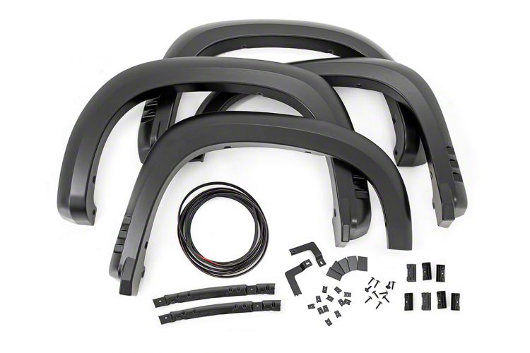 Untamed Spirit. Unleash the untamed spirit of your 2019-21 Silverado 1500 or 2022 Silverado 1500 LTD with these Rough Country SF1 Fender Flares. These meticulously crafted fender flares, cast in rugged ABS plastic, offer a dominating, aggressive look that transforms your Silverado into a road king. Their flat black finish isn't just about aesthetics, it's also a ready canvas, offering the flexibility to paint and match your vehicle’s style perfectly.
