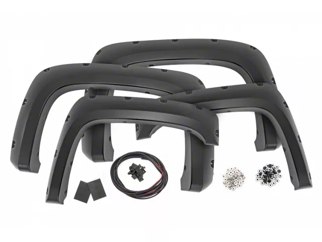 Stylish and Durable Fender Flares. The Rough Country Fender Flares are designed to provide enhanced protection and a bold look for your Silverado 1500. These fender flares are perfect for owners looking to add a traditional, wide pocket style with a simulated riveted appearance.
