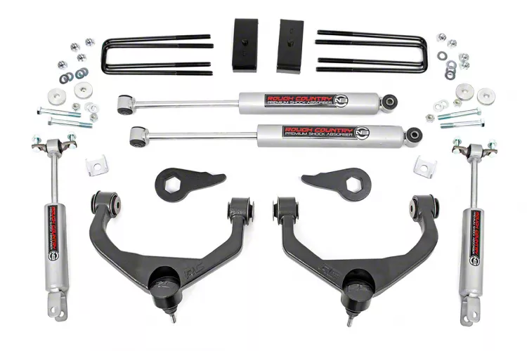 Comfort and Performance for the Road and Trail. If you’re looking for a suspension lift kit that offers on-road comfort and off-road performance, the Rough Country 3.50-Inch Bolt-On Suspension Lift Kit with Premium N3 Shocks is just what you need. This suspension lift kit is designed to provide your Silverado 2500 HD with 3.50 inches of overall lift while also leveling-off its stance. This added clearance gives your truck the ability to make short work of more rugged off-road trails while running 33-inch tires. Moreover, this kit includes components that keep suspension geometry at factory levels, giving you a comfortable ride.