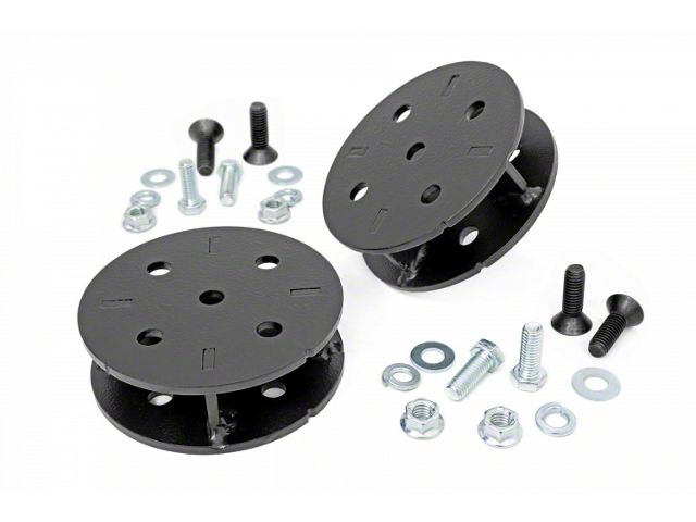 Enhanced Suspension Performance. The Rough Country 6-Inch Rear Air Spring Spacers are designed to elevate your vehicle's suspension system, offering increased ground clearance and a more robust stance. These durable spacers come with a lifetime replacement warranty, ensuring their longevity and performance. The straightforward, drilling-free installation process and the inclusion of necessary steel brackets make these spacers a convenient upgrade for any vehicle.