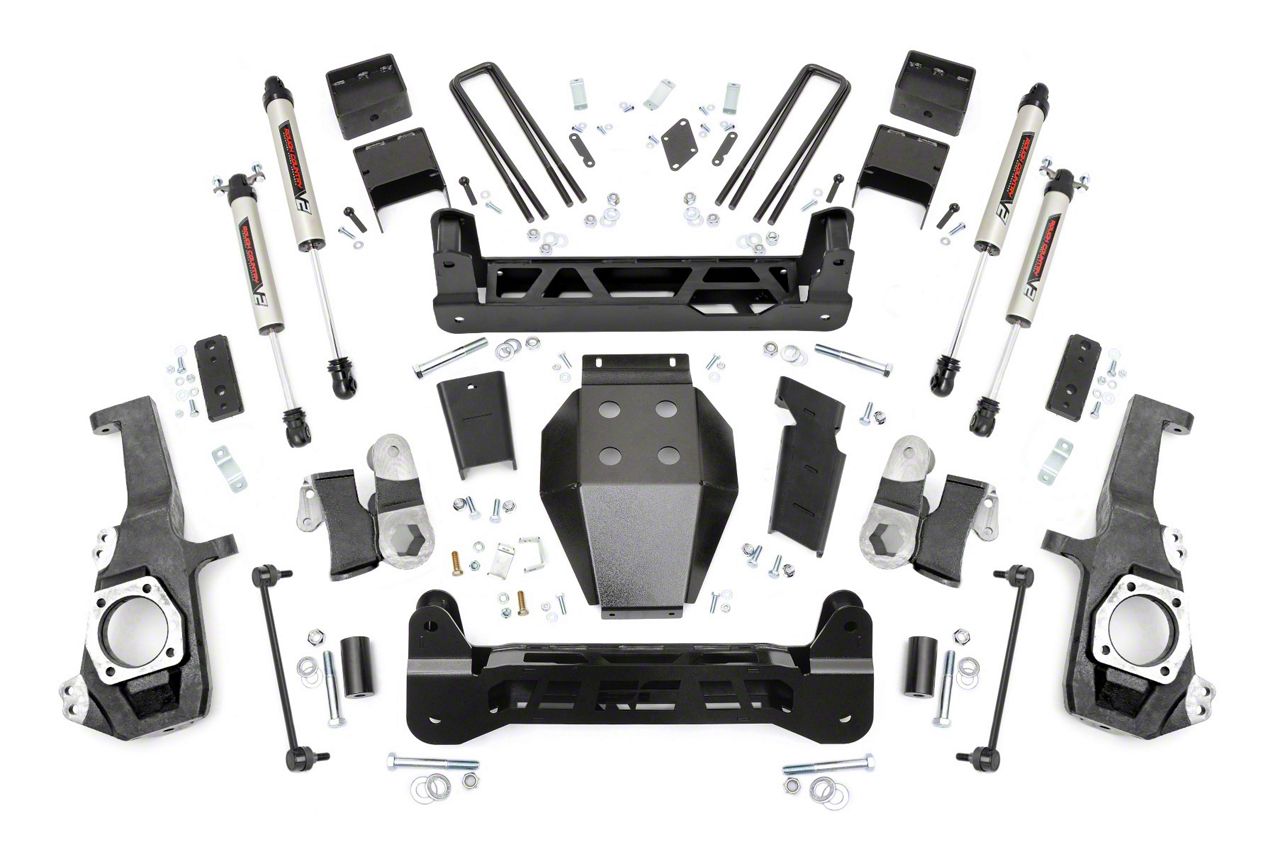Flush and Clean Look. Installing this Rough Country 5-Inch NTD Suspension Lift Kit with V2 Monotube Shocks will give your truck an extra 5-inch lift. Unlike other suspension lift kits, this suspension lift kit will make your vehicle’s undercarriage sport a flush and cleaner look. Thanks to its non-torsion drop design, you can let your truck exhibit a more aggressive exterior appeal while allowing it to run up to 35-inch tires.
