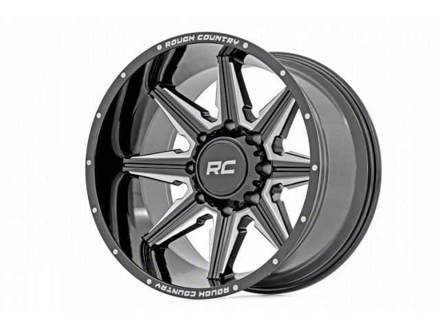 Rough Country One-Piece Series 91M Gloss Black 8-Lug Wheel; 20x12; -44mm Offset - Enhance your vehicle's style with the Rough Country wheel. This wheel's distinctive design and finish complement your vehicle's aesthetics, making a bold statement. It's crafted to accentuate the unique character of your car, emphasizing a premium and robust appeal.