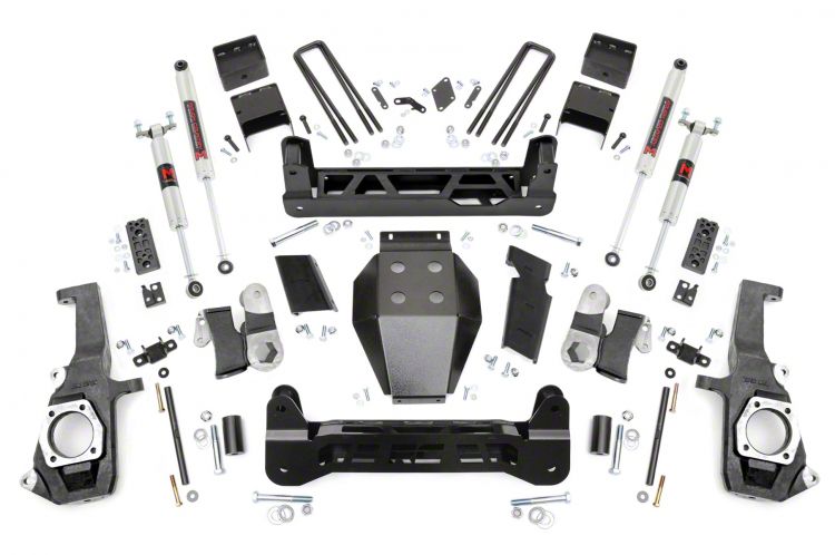 Right off the lot The GM 2500 HD has an impressive stance and a killer look, inspiring Rough Country to build a kit that would add crucial enhancements while taking nothing away from this sharp looking, new model truck. The 5" N3 Suspension Lift for GM 2500 HD features a Non-Torsion Drop Design for better clearance and handling while maintaining proper angles in a "clean and tucked away" fashion. This kit also features Heavy Duty components worthy of the HD badge; With 1/4" thick steel crossmembers, 1/2" thick NTD Brackets, and a durable, thick Skid Plate - all laser-cut and powder coated in our "Hammer Black" color to match the factory components. Installation requires no drilling or modifying the differential, meaning no "invasive" mods to your new toy. A set of braided Stainless Steel Brake Lines hones the whole package in.Our innovative HD lift doesn't just look like it came from the showroom floor, it drives like it did too. This kit doesn't widen the stock track width, and the Non Torsion Drop design keeps everything at optimum angles, leaving that factory feel to handling corners and turns. A full set of Nitrogen charged N3 Shock Absorbers offer 10-Stage velocity sensitive valving, and are custom valved for each model kit we offer - meaning you get a set of shocks designed to preserve your factory ride quality.