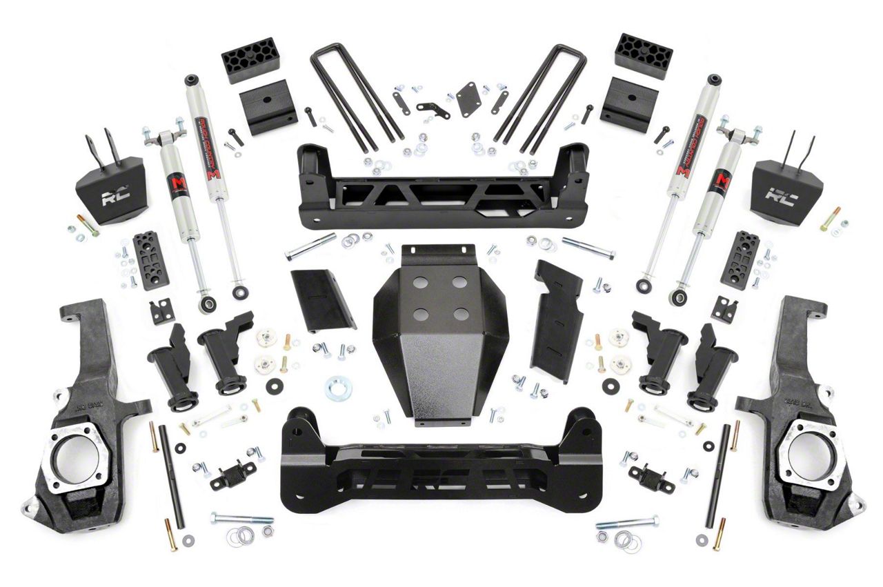 Straight from the lot, the GM 2500HD/3500HD boasts an aggressive stance and sleek design. Inspired by its bold presence, Rough Country developed a suspension kit that enhances its performance without compromising its sharp aesthetics. The 5" Suspension Lift for GM 2500HD/3500HD incorporates a Torsion Drop Design that improves ride quality and handling while maintaining factory angles for a smooth, balanced drive.Torsion Drop Design: Provides improved ride quality and handling, while preserving factory angles for a smooth and controlled drive.Heavy Duty Components: Features 1/4" thick steel crossmembers, Torsion Bar Drop Brackets, and a rugged skid plateΓÇö all laser-cut and powder-coated in "Hammer Black" to match factory components.No Drilling or Differential Modifications Required: Install with ease, no invasive modifications needed to maintain the integrity of your truck.Precision Fitment: Designed to preserve the factory ride feel and handling without widening the track width, ensuring your GM 2500 HD stays sharp around corners.Customizable Shock Options: Choose from a range of high-performance shock options, including our nitrogen-charged N3 shocks, V2 monotube shocks, M1 monotube shocks, and adjustable Vertex shocks. The power to select the right shock series for your needs is in your hands.Rough CountryΓÇÖs 5" Suspension Lift doesnΓÇÖt just look like it came off the showroom floorΓÇöit feels like it too. Achieve the perfect balance of strength, style, and smooth handling with this innovative lift kit, designed specifically to complement your GM 2500HD/3500HD.