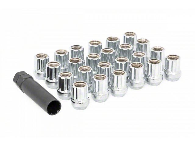 Description. Secure your new wheels with Rough Country’s Bulge Acorn Style Lug Nuts. These cold-forged lug nuts are plated with a beautiful chrome finish for a long lifespan of corrosion resistance and good looks. Acorn bulge nuts provide over 6% more seating surface area than a standard acorn lug nut. These premium lug nuts are the perfect choice for securing aftermarket wheels, and far exceed OEM strength and hardness. Each lug nut set includes a socket key for easy installation or removal. Choose between black or chrome finish for the perfect compliment to your build!