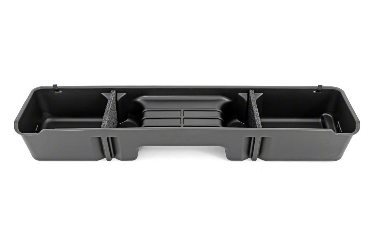 Clean up the contents of your cab with Rough Country's Custom-Fit Under Seat Storage Compartment. These handy under seat truck storage compartments offer an easy way to store your gear with a custom, contoured look that blends in seamlessly with your vehicle's factory design. Keep your tools, gear, and other odds and ends organized and stowed away while conveniently stowed away under the rear seats. Each under seat storage tray is constructed from a durable, high-density thermoplastic material that's built to withstand kicks, nicks, and corrosion. A convenient anti-skid surface helps prevent the contents of your under seat cargo tray from rolling around while driving. Best of all, Rough Country's Custom-Fit Under Seat Storage Compartments are easy to install, so you can upgrade your cargo management quickly and easily!