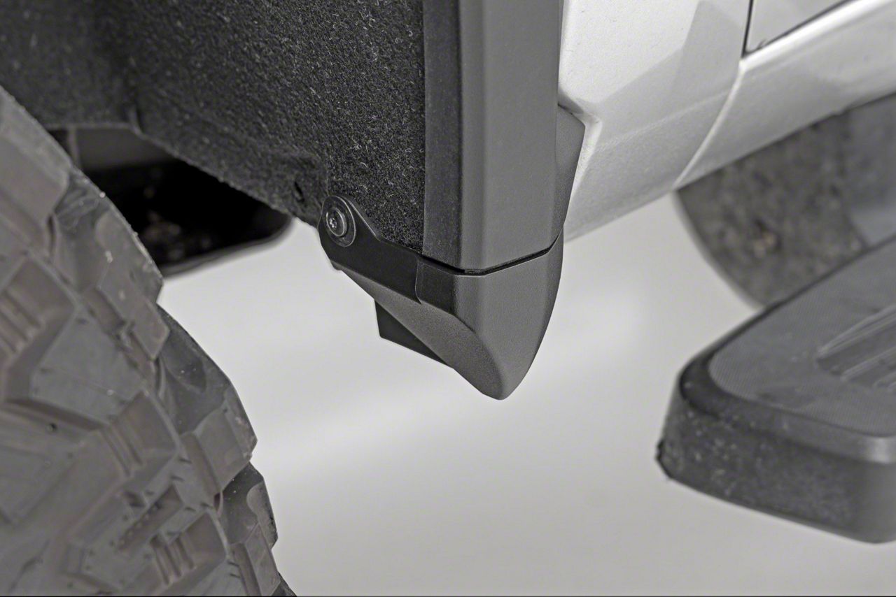 Installation. Installation of the Rough Country Mud Flap Delete Kit is simple and straightforward. While minimal cutting is required, the process is manageable with basic hand tools and does not demand extensive modifications. The kit is designed to align perfectly with your vehicle’s existing mounting points for a seamless fit.