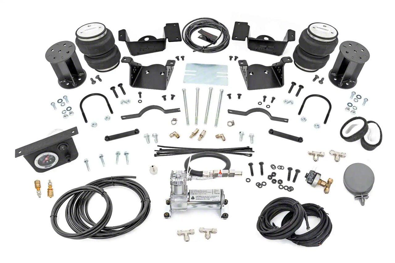 Description. Rough Country's Rear Air Spring Kit features two RC branded high-quality double convoluted airbags complemented with DOT-approved airlines. Whether you plan on towing or hauling in the not-so-distant future Rough Country's Air Spring kit is the must-have accessory to ensure that your trailer is level reducing the weight off of the tongue of your trailer. Each kit offers 1/4" push connector fittings and all of the bracketry needed to ensure installation is lightning fast and secure!