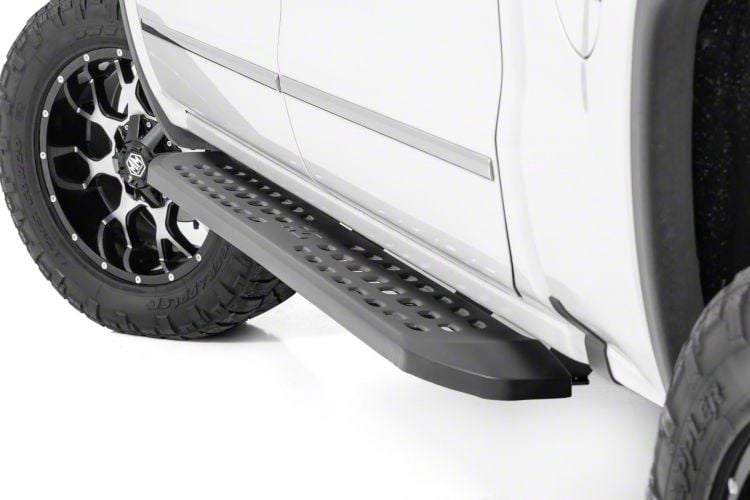 Heavy-Duty Stepping Area. Upgrade your vehicle with Rough Country's RPT2 Running Boards. Their 6.75-Inch stepping area makes stepping in and out of your car a breeze, and their aluminum construction is as tough as it looks. The matte black finish will give an updated, stylish look to any vehicle, while the coating provides extra protection from harmful UV rays and extreme weather conditions.
