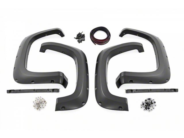 Other Features. These fender flares feature a traditional pocket style that adds a rugged, distinctive appearance to the vehicle. The design also allows for larger tires, enhancing both the aesthetic and functionality of your truck.