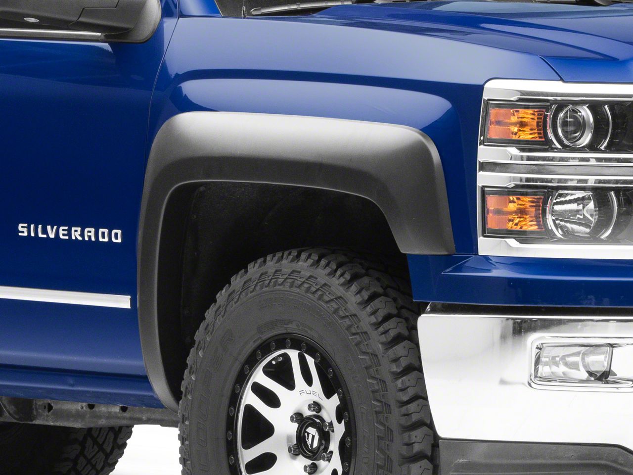 Application. The Rough Country Smooth Pocket Fender Flares will fit perfectly on all 2014 to 2015 Chevrolet Silverado 1500 Models equipped with 6.50 and 8-foot standard and long boxes.