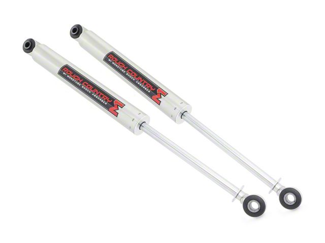 Description. Whether you're tackling tough terrain or smooth city streets, Rough Country's Nitrogen-charged M1 Monotube Shock Absorber leads the way, delivering impeccable ride quality and performance mile after mile. Rough Country's Monotube M1 Shocks feature an internal floating piston design that keeps the shock oil and high-pressure nitrogen separate. The result is a lightning-fast reaction with no cavitation - just unbridled vibration damping at each and every obstacle. The M1 Monotube Shock Absorber is more than an upgrade - it's a true performance shock. Each shock features a steel body that is brushed and glavanized boasting a passivation sealing technology that is sure to withstand the elements. The internal 46mm digressive piston offers countless years of durability. The M1 is designed to be mounted body-up for a more interesting look on the vehicle.